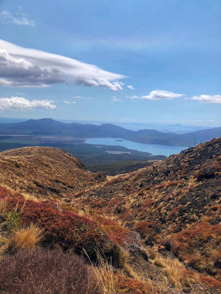Changement de décor total pour la suite de la randonnée. Vous allez passer sur l’autre versant de la montagne, et pouvez apercevoir au loin le lac Rotoaira. La suite se déroule en zig-zag, ce qui je vous l’avoue peut paraître assez long puisque vous êtes déjà fatigués par le début éprouvant que vous venez de faire. L’autre moitié du parcours n’en est pas pour autant moins beau, c’est très different et apaisant à la fois.
