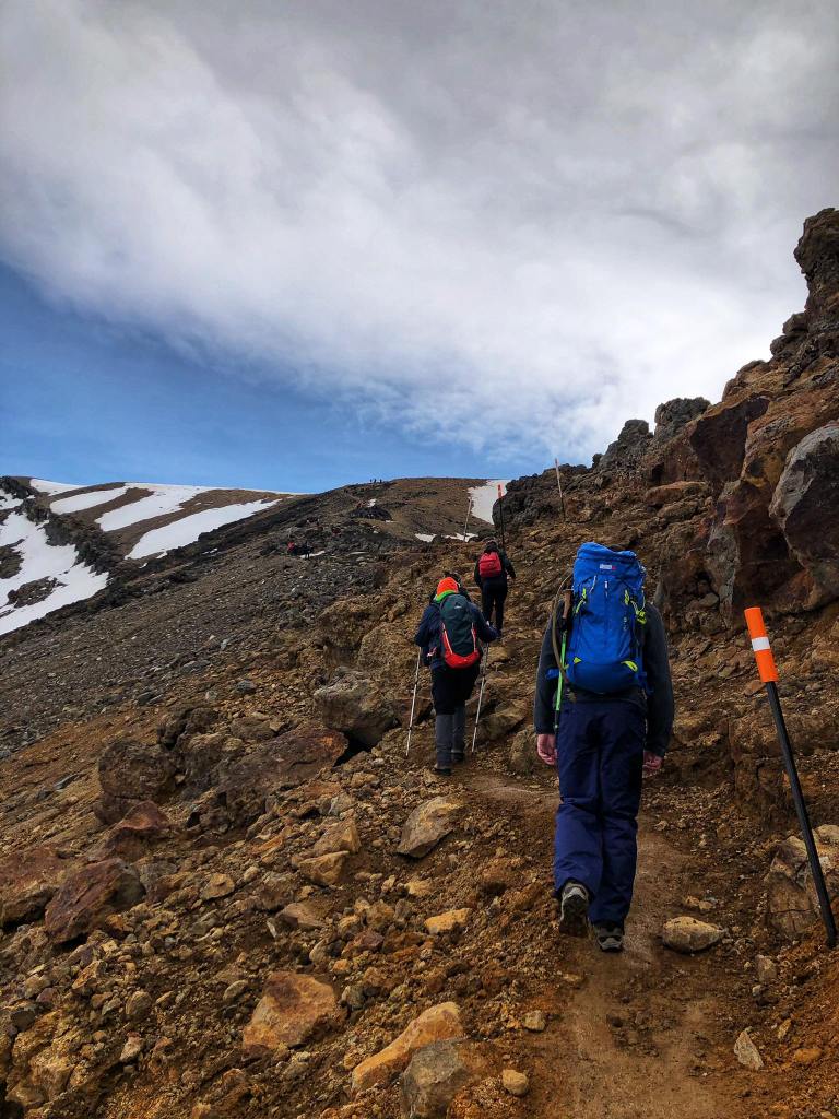 Alors pour commencer, c’est un chemin de 19,4 km très bien sécurisé et délimité par le gouvernement. Cela dépend bien évidemment de chaque personne mais il faut compter entre 6 et 8h de marche pour le compléter. Ce n’est pas le genre de randonnée où vous n’allez croiser personne et où le chemin n’est pas bien indiqué. Si vous pensez cela détrompez vous c’est une des randonnées les plus visitées au monde et il y a en moyenne 2000 personnes qui s’y aventure chaque jour de l’année. Alors oui vous y verrez beaucoup de monde et on marche un peu à la suite les uns des autres. Bien sur tout dépend de la période à laquelle vous y aller. C’est selon vos goûts personnels en période d’hiver il y a pas mal de neige ce qui change le paysage et il fait aussi assez froid en haut donc il faut être couvert! En été c’est tout le contraire; beaucoup de monde, une chaleur étouffante et des montagnes et volcans à nus devant vous. Personnellement je l’ai faite fin octobre et je n’ai absolument pas regretté, le paysage avec la neige était beaucoup plus impressionnant de mon point de vue. Je ne pense pas être capable de marcher autant de temps sous une chaleur comme celle de la Nouvelle-Zélande.